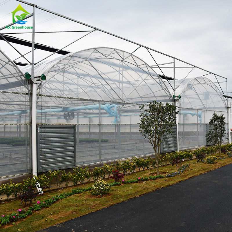 โรงเรือนโค้งหลายช่วงมีความสามารถในการต้านทานแรงลมและแรงหิมะได้ดี ภายในสามารถเพิ่มฉนวนกันความร้อนแบบโค้งได้ ในฤดูร้อน ใช้ระบบทำความเย็นด้วยแผ่นระบายความร้อนและพัดลม ระบบระบายอากาศด้านข้างหรือด้านบน และการแรเงาภายนอกเพื่อทำงานร่วมกันเพื่อให้เกิดผลในการทำความเย็น ราคาไม่แพง ใช้กันอย่างแพร่หลายโดยทั่วไปทำช่วง 6 เมตร, 7 เมตร, 8 เมตร, 9.6 เมตร วัสดุคลุมด้านบนโดยทั่วไปใช้แผ่นพลาสติก ล้อมรอบด้วยเมมเบรนไม่จำกัดเฉพาะแผ่นฟิล์ม ยังสามารถใช้แผง PC หรือกระจกและวัสดุคลุมอื่นๆ